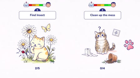 🤖 Sistem sizi sorguluyor: insan mısınız yoksa ruhsuz bir makine mi? Meow Captcha, zeki bulmacalarla dolu bir online oyun deneyimi sunuyor. Göreviniz, bu zorlu görevleri çözerek, tüylerimi budurmuş kahramanlara 🐱 yardım etmek ve bir algoritmanın sahip olamadığı bir şey olduğunu kanıtlamak: kedileri seven bir kalp ❤️🐾.